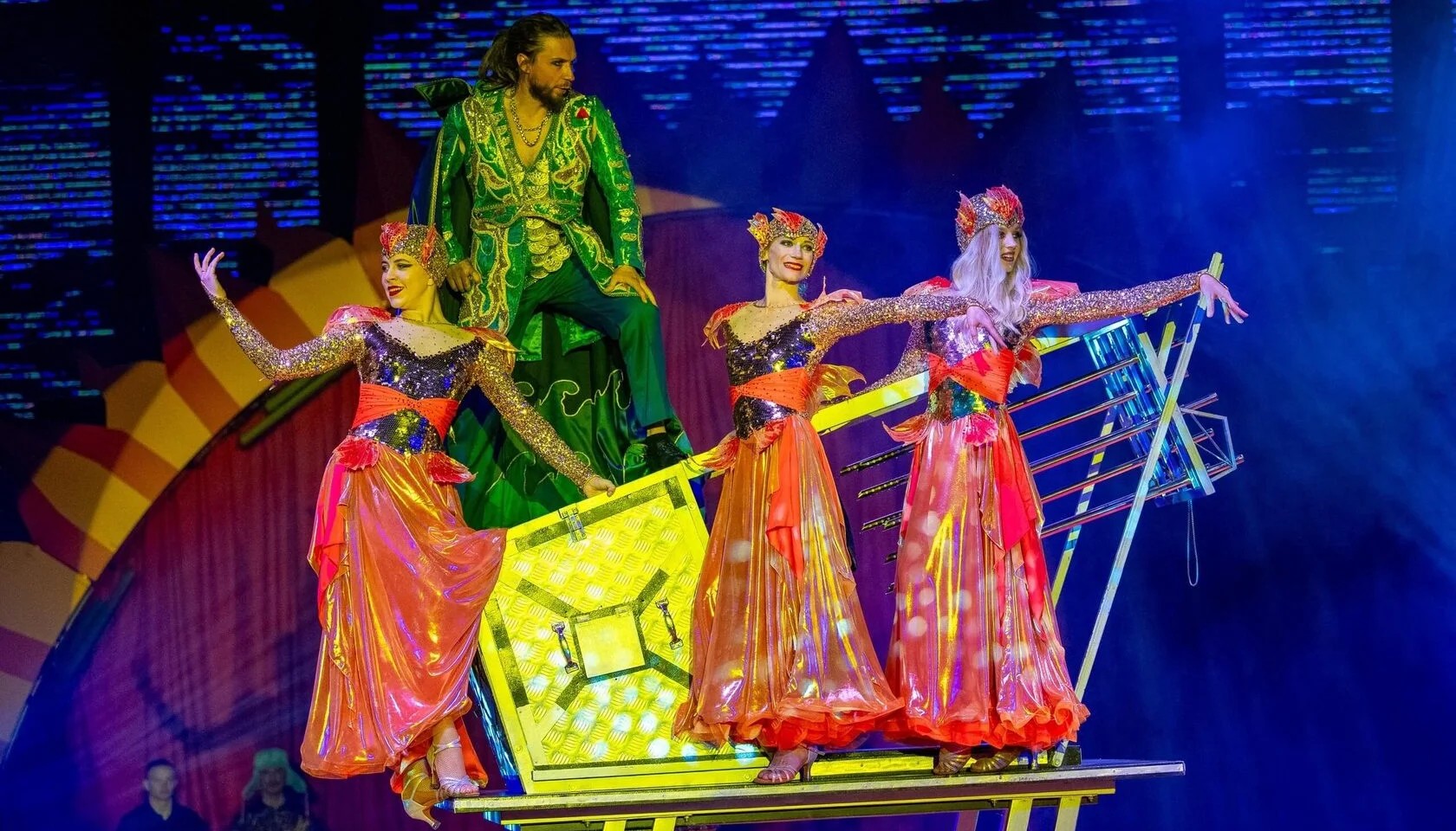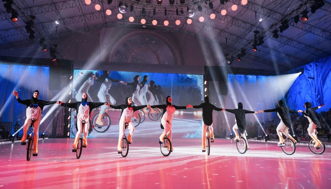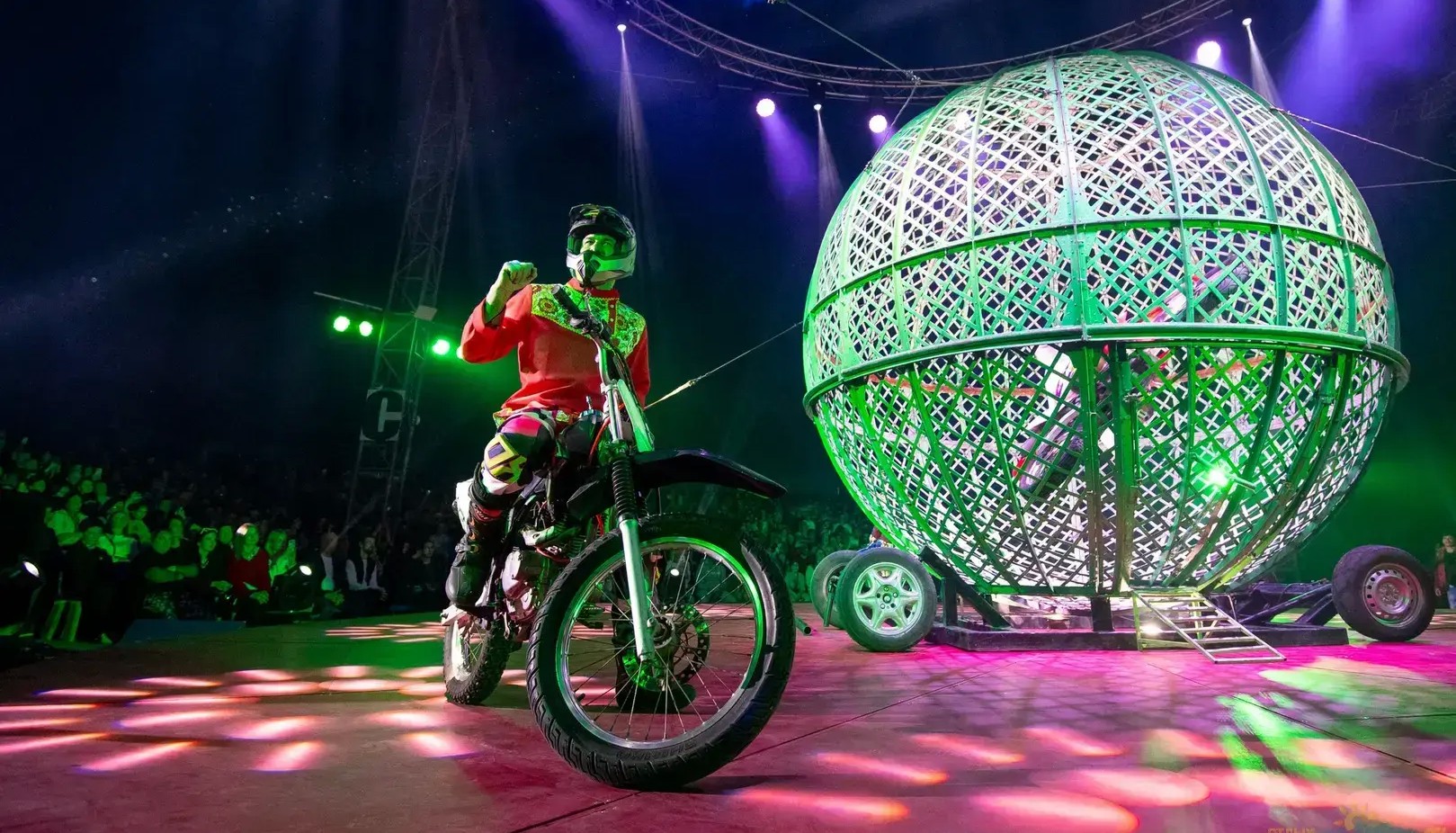 Погрузитесь в атмосферу новогодней сказки и чуда! В шоу принимают участие – клоуны, жонглёры, акробаты, воздушные гимнасты, фокусники. Кульминацией станет захватывающий номер «Шар смелости» – внутри металлической сферы на огромной скорости одновременно будут кататься мотоциклисты!