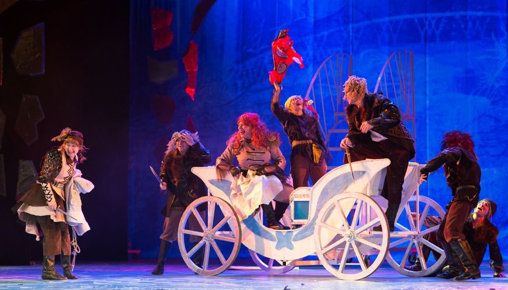 «Снежная королева» на сцене театра — это яркий спектакль в жанре фэнтези. Маленьким зрителям обязательно понравятся визуальные спецэффекты, дополняющие декорации. Вместе с героями они побывают в цветочном саду, в логове маленькой разбойницы, на балу у принца и в холодном ледяном дворце Снежной королевы.